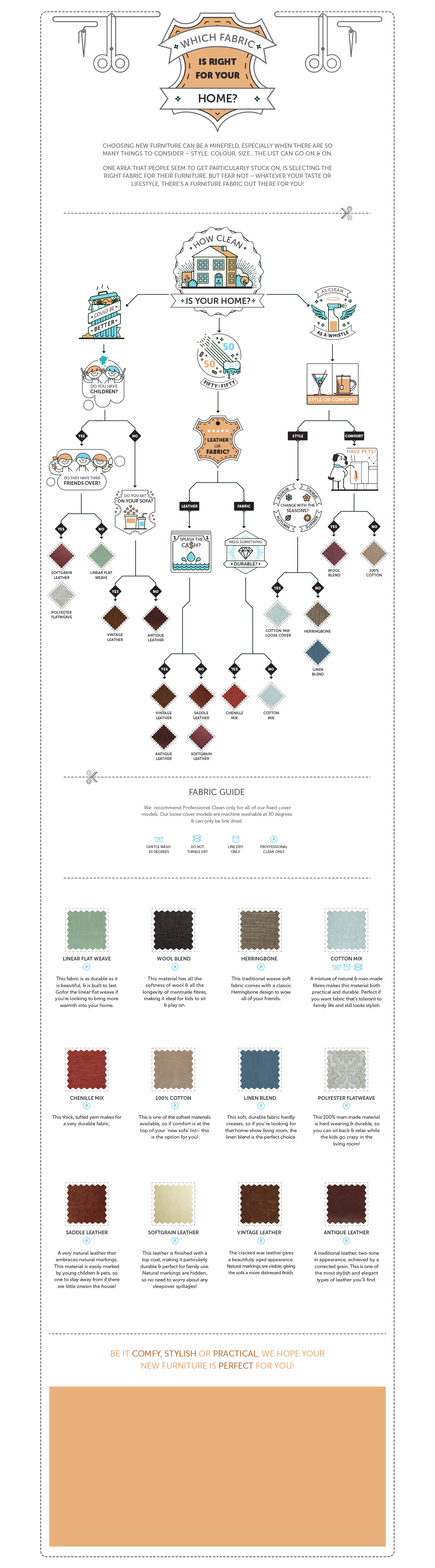 Which Fabric is Right For Your Home? Infographic design created for a furniture company.